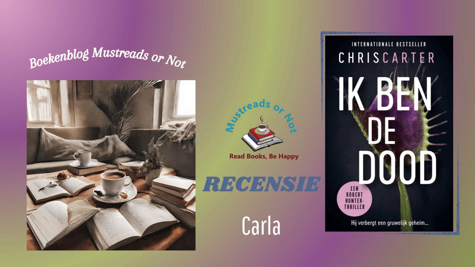 Chris Carter – Ik ben de dood. Auteur: Chris Carter Uitgever: Harper Collins Nederlands 14 januari 2025 9789402716115 384 pagina’s Ik ben de dood. Pfff, ik moet nog even bijkomen! Wat een bloedstollend spannende thriller is dit weer zeg! Iedereen kan zelf de achterflap lezen van dit zevende deel van Chris Carter, en natuurlijk moetenMeerMeer lezen over “Ik ben de dood – Chris Carter “Wat een intense thriller! Kroop echt onder mijn huid en was niet weg te leggen!””